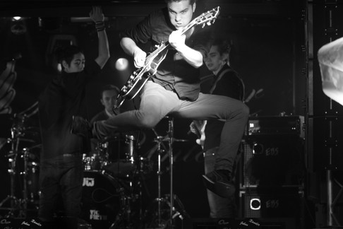 Someone hands him his guitar and repositions the mic for him, the rest of the band still playing as if nothing had happened, each member giving an understanding nod and smile.